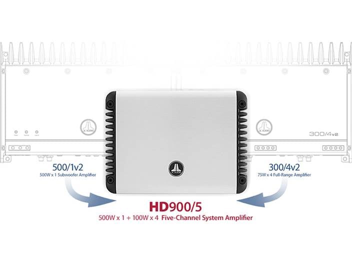 JL Audio HD Series HD900/5 5-channel car amplifier — 100 watts RMS x 4 at 4 ohms + 500 watts RMS x 1