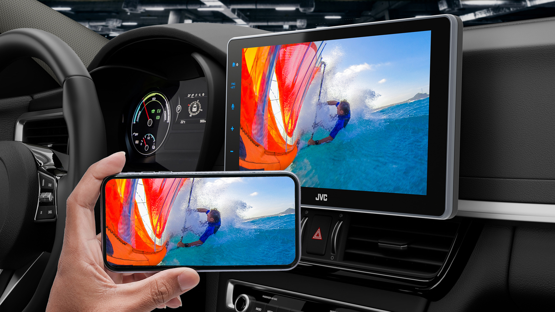 Display your smartphone screen on the KW-Z900W’s display via an HDMI cable and third party adapter.