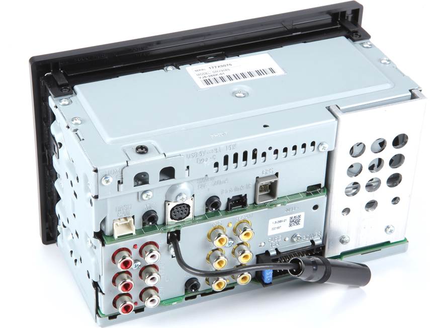 - outputs: rear video output (RCA), 6-channel preamp outputs (5-volt front, rear, sub)
